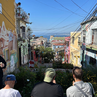 Valparaiso has 300k inhabitants, over 1m in the metro area. There’s a flat section by the harbor, with many hills immediately surrounding. Overall after 48 hours, kinda dirty, run-down, rough; but beautiful, bohemian feel. The hills (cerros) - 2 in particular: Alegre and Conceptión, are where the former European upper classes lived, they’re where most (all so far) of the fun spots are. We are on Cerro Alegre - Calle Lautaro Rosas 449.