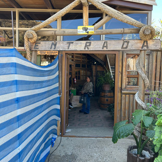 Ventured out, in an Uber, to a town 7 miles south of Valparaiso, on a beach with a lagoon similar to Stinson. We got dropped off at the highway, and walked the mile or so to the beach. On the way we passed by this place "Restaurant Galleon', and this guy coming the other way told us (in spanish), if we were looking for lunch, this was the place. He was right; it was excellent and fun: