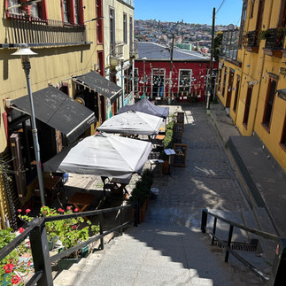 The walk through Cerro Alegre on the way there - art museum, residents taking a break, the building housing Circular, a restaurant I’ve talked about, dunno, and a glass cube in the direction of the port: