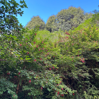 Stopped where we are staying, the @RanchoPatagon / Doble AA / Acogedora cabañas, dropped off the bags, and did a pretty strenuous hike up the side of a mountain - “Las Bardas”. Their dogs Lola and <unknown perro> came with us: